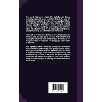 This work has been selected by scholars as being culturally important, and is part of the knowledge base of civilization as we know it. This work was reproduced from the original artifact, and remains as true to the original work as possible. Therefore, you will see the original copyright references, library stamps (as most of these works have been housed in our most important libraries around the world), and other notations in the work. This work is in the public domain in the United States of America, and possibly other nations. Within the United States, you may freely copy and distribute this work, as no entity (individual or corporate) has a copyright on the body of the work.As a reproduction of a historical artifact, this work may contain missing or blurred pages, poor pictures, errant marks, etc. Scholars believe, and we concur, that this work is important enough to be preserved, reproduced, and made generally available to the public. We appreciate your support of the preservation process, and thank you for being an important part of keeping this knowledge alive and relevant.